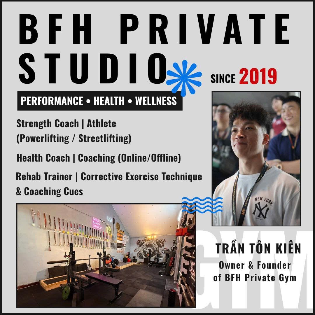 “I am here visiting from Canada and arranged coaching with Kien for a reasonable cost. I spent over 3 hours learning correct form for the main 3 lifts in powerlifting, the bench, back squat, and deadlift. I learned a lot from him, and I took plenty of notes to take home with me to Canada in order to improve my lifting. Kien spoke English enough for effective coaching and his advice was great. I would highly recommend anyone check out BFH for powerlifting training. Kien was fantastic and I'll be visiting again next time I'm in Vung Tau.”