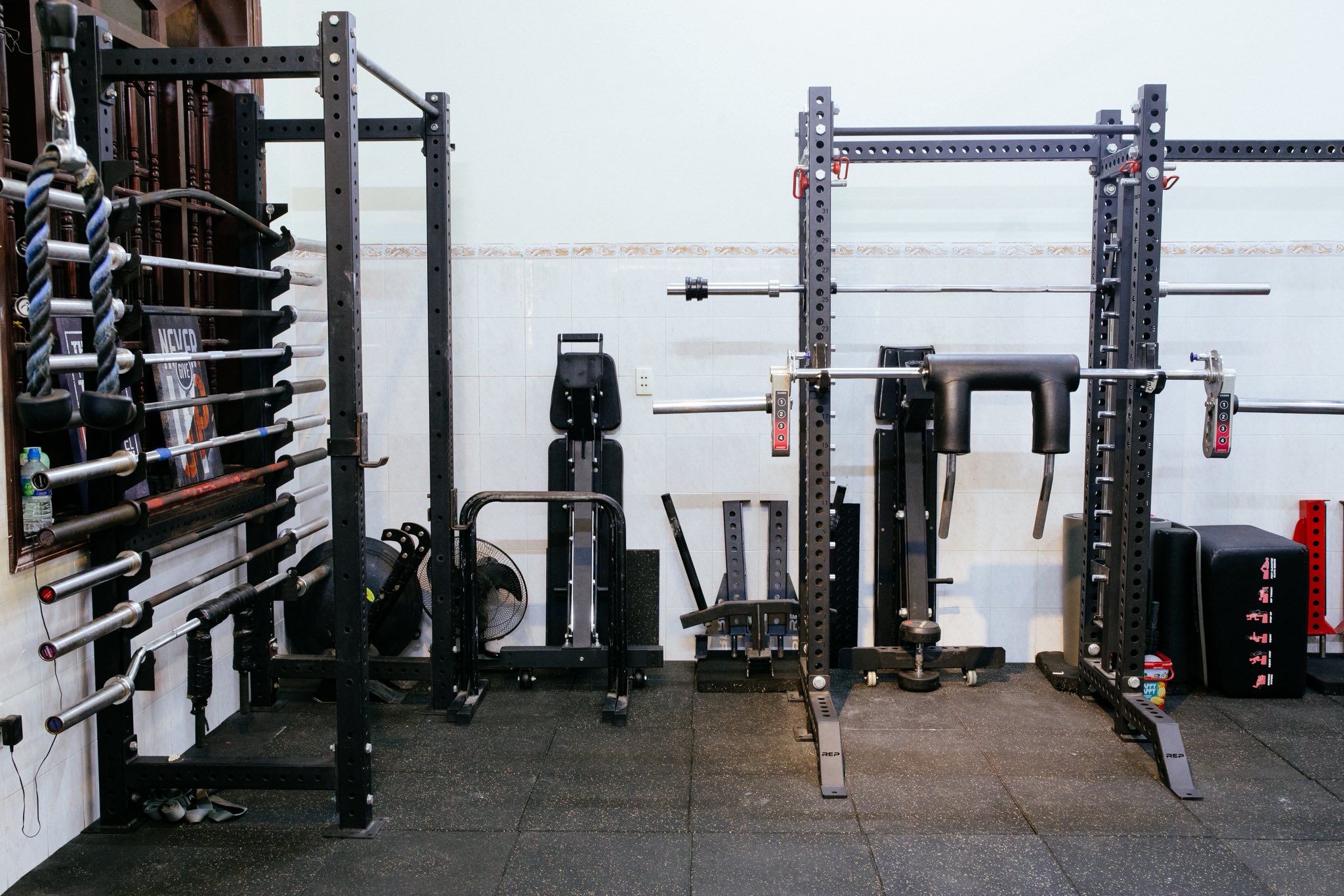 “Amazing gym for powerlifting or calisthenics. Lots of plates, chalk, accessories. Multiple barbell with different widths (27 mm, 28 mm & 29 mm). Picture of the wide selection of cable attachments below. The owners is also really nice & speaks good English!”